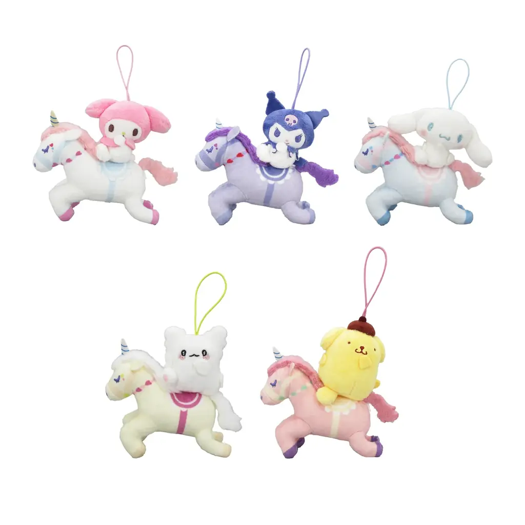 ラインアップに含まれるキャラクターは、マイメロディ、クロミ、シナモロール、はなまるおばけ、ポムポムプリンの5キャラクターです。いずれも『うま』をモチーフにしたメリーゴーラウンドの世界観で描かれたオリジナルアートとなっています。