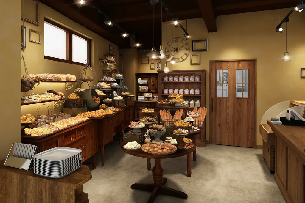 新店舗はブランドの人気キャラクター「S.Tハーティ(ハーティ)」が建てた1号店をイメージしたヴィンテージ調の内装を採用。温かみのある配色や素材感で統一され、店内はパンに囲まれるようなレイアウトで来店者に“マジカル”な世界観を体験させる設計です。店内での滞在時間や商品を選ぶ行為そのものを特別な時間にすることを意図した空間づくりが行われています。