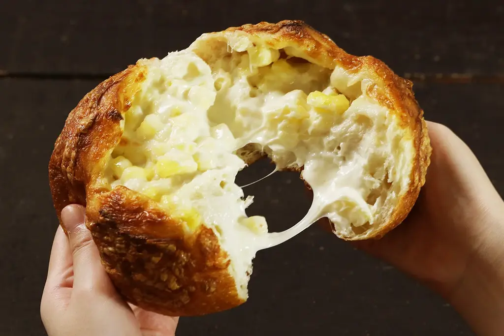 特徴:外はカリッ、中はモチッとした食感で、リベイク(再加熱)すると内部のもちもち感と外側のカリッとした食感のコントラストがより際立ちます。チーズのコクととろける食感が特長です。
