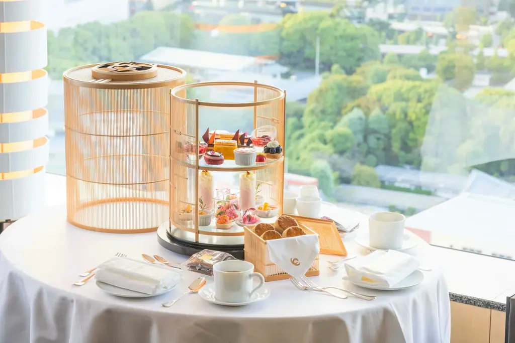 高い人気を誇る「ORIGAMI」のアフタヌーンティーを客室でプライベートに楽しめるプランです。駿河竹千筋細工の美を映したティースタンドに並ぶ季節のスイーツとセイボリーをルームサービスで提供し、早めのチェックインや朝食の提供も含まれます。