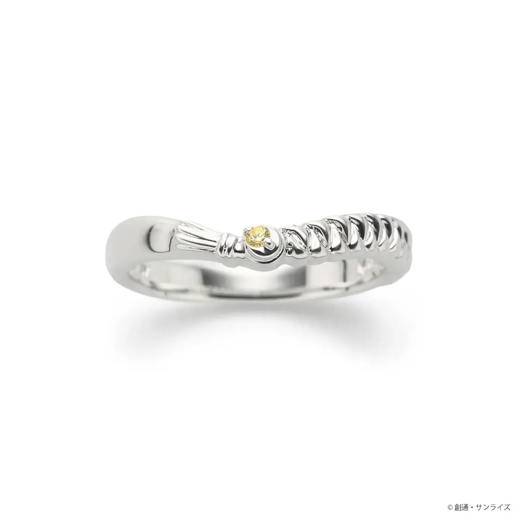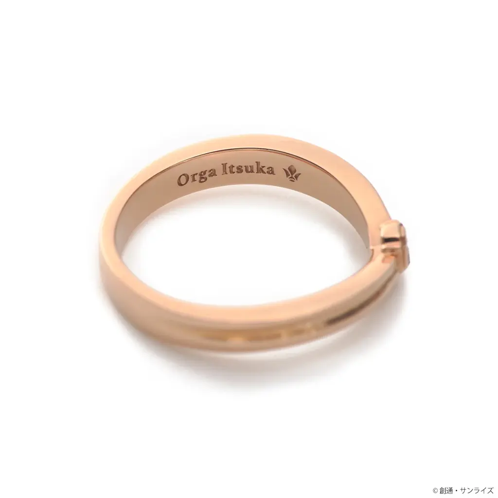 本コラボでは各キャラクターの特性や象徴的なアイテムをジュエリーデザインに落とし込み、細部にわたりキャラクター性を表現しています。どちらのモデルもリング内側に名前と鉄華団のマークが刻印され、イメージカラーのストーンがセットされています。