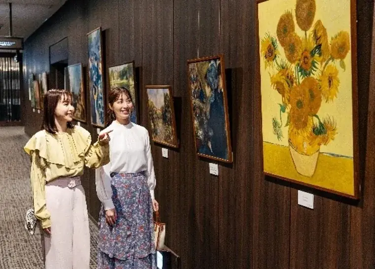 - 名画複製の展示コーナーを1Fに設置。美術館の雰囲気を取り入れた演出。