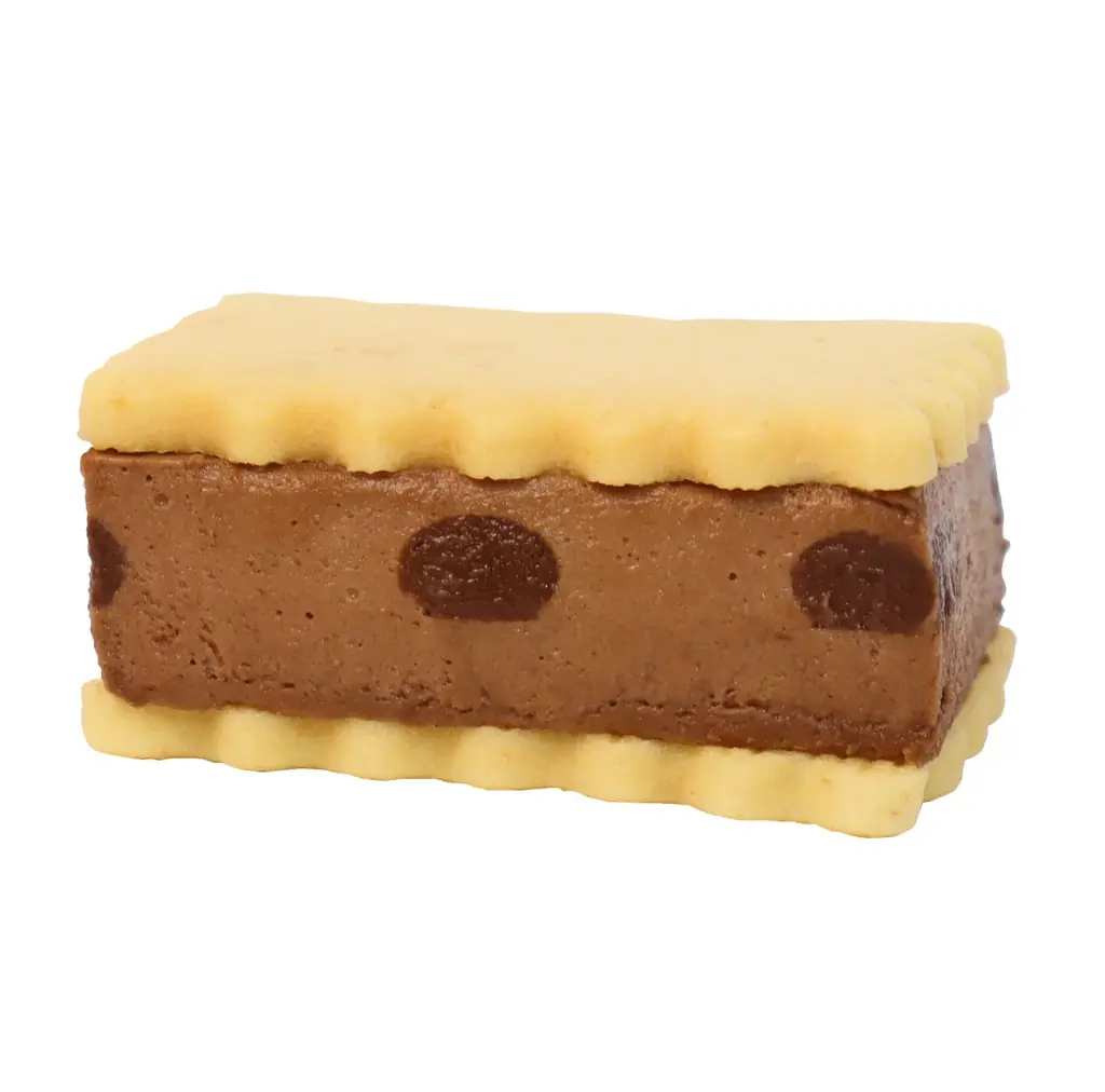 - 古園井寧々考案:しっとり ご褒美チョコサンド — 本体298円(税込321.84円※2)。真ん中に濃厚なチョコカスタードを挟んだチョコサンド。カラメルチップ入りのチョコカスタードで食感に変化を持たせています。古園井寧々さんはクッキーのしっとり感とムースの硬さのバランスにこだわったとコメントしています。