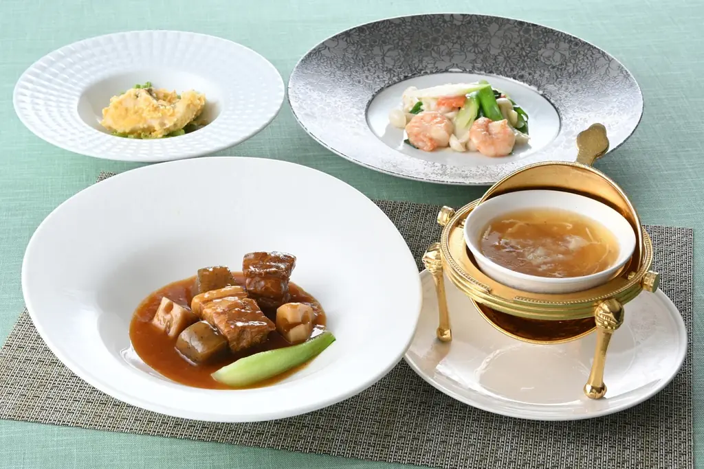 - 広島県産若鶏胸肉のフカヒレスープ:若鶏胸肉とフカヒレを組み合わせたスープで、旨味をひと皿で感じられる構成。