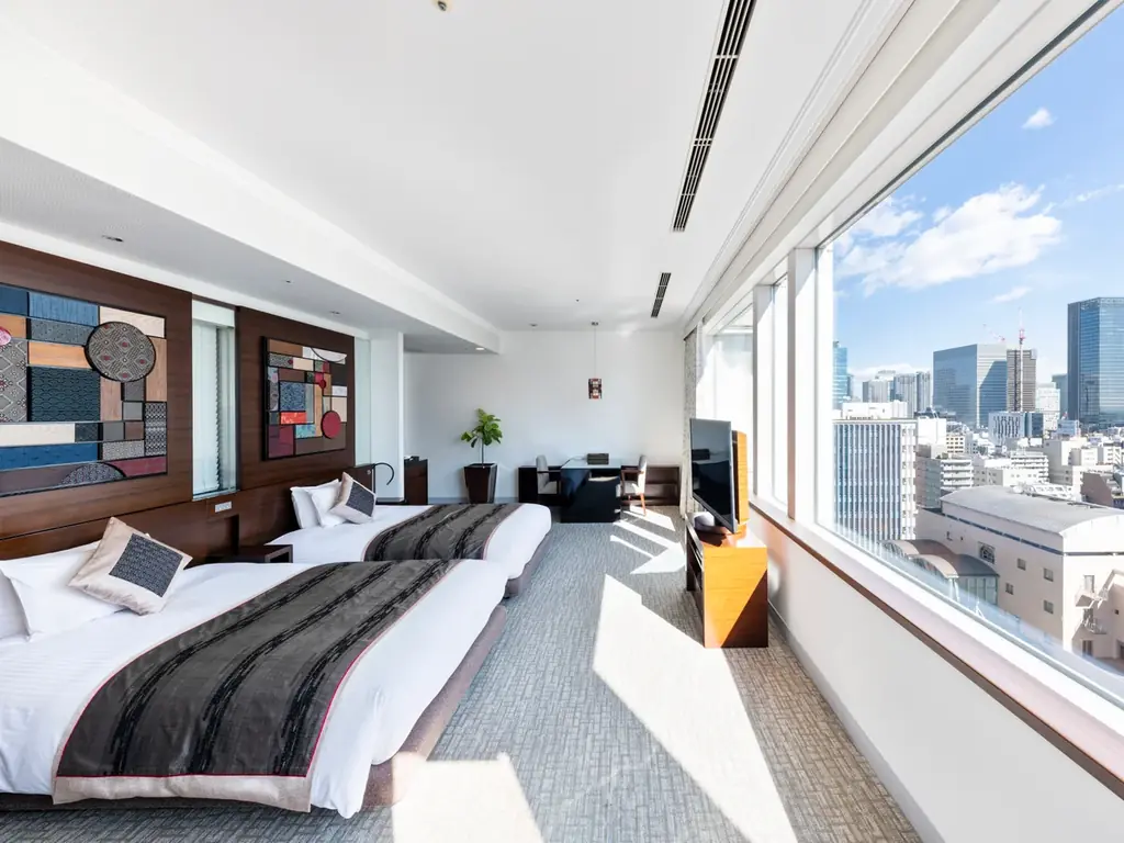 ホテル ザ セレスティン東京芝は宿泊者専用のラウンジ&パティオ、スパ施設があり、客室は大きな窓から自然光が差し込みます。上質なインテリアに包まれた滞在環境を提供することを目指しています。