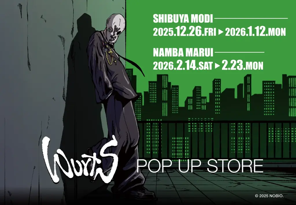 同コラボに合わせて、渋谷モディおよびなんばマルイの2会場で「WurtS POP UP STORE」が開催されます。会場では新規ビジュアルを用いた限定グッズや、WurtSを象徴するアイテムを中心に販売されます。