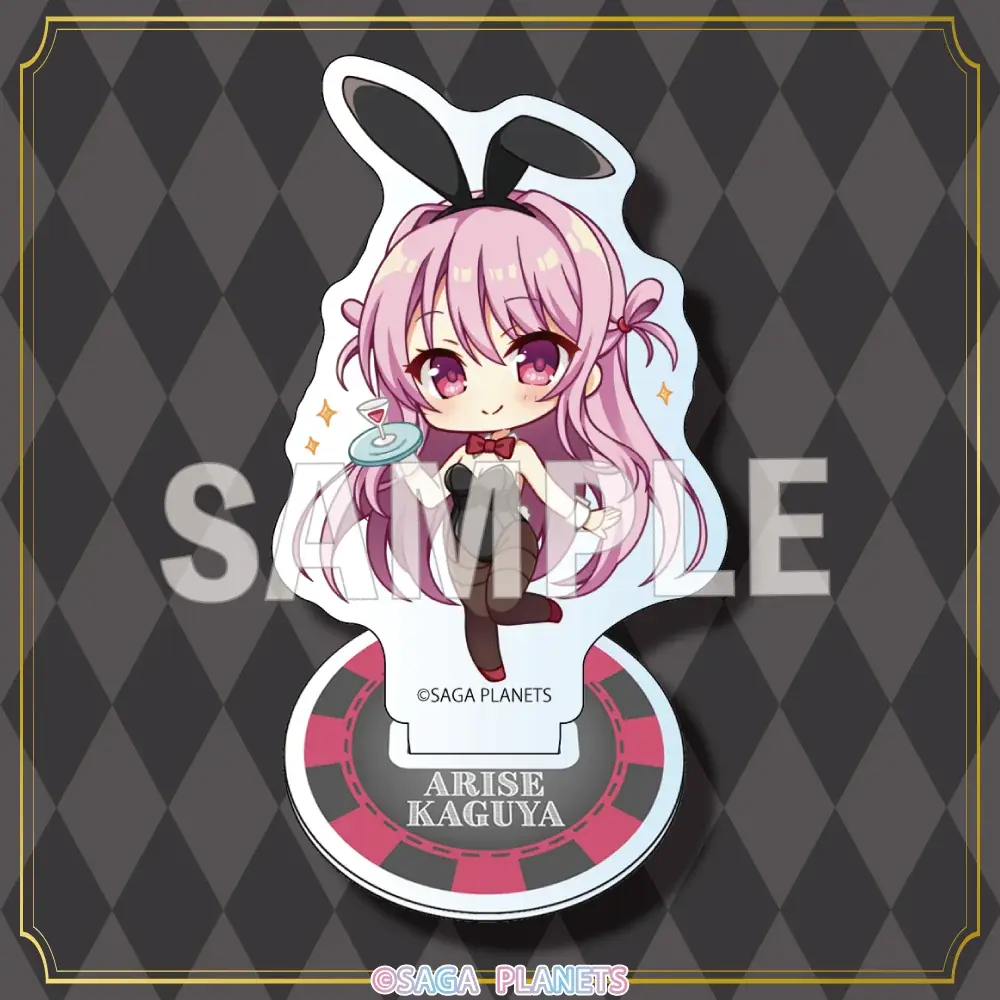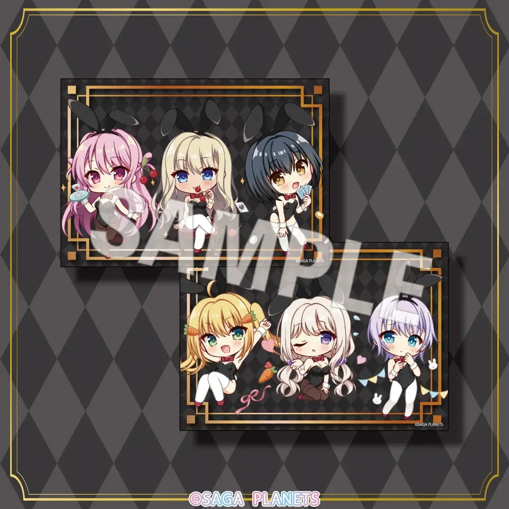 - 約 H70×W55mm以内のミニキャラアクリルスタンド(全6種)。今回のくじ用に新規描き下ろしのミニキャラ(バニーガールテーマ)もラインナップされます。