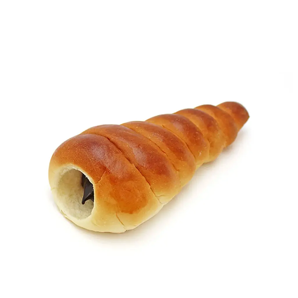 チョココロネは巻貝の形をした昔ながらの手作りパンで、中にチョコレートクリームが入ります。シンプルながら定番の味わいをしっかりと感じられる一品です。