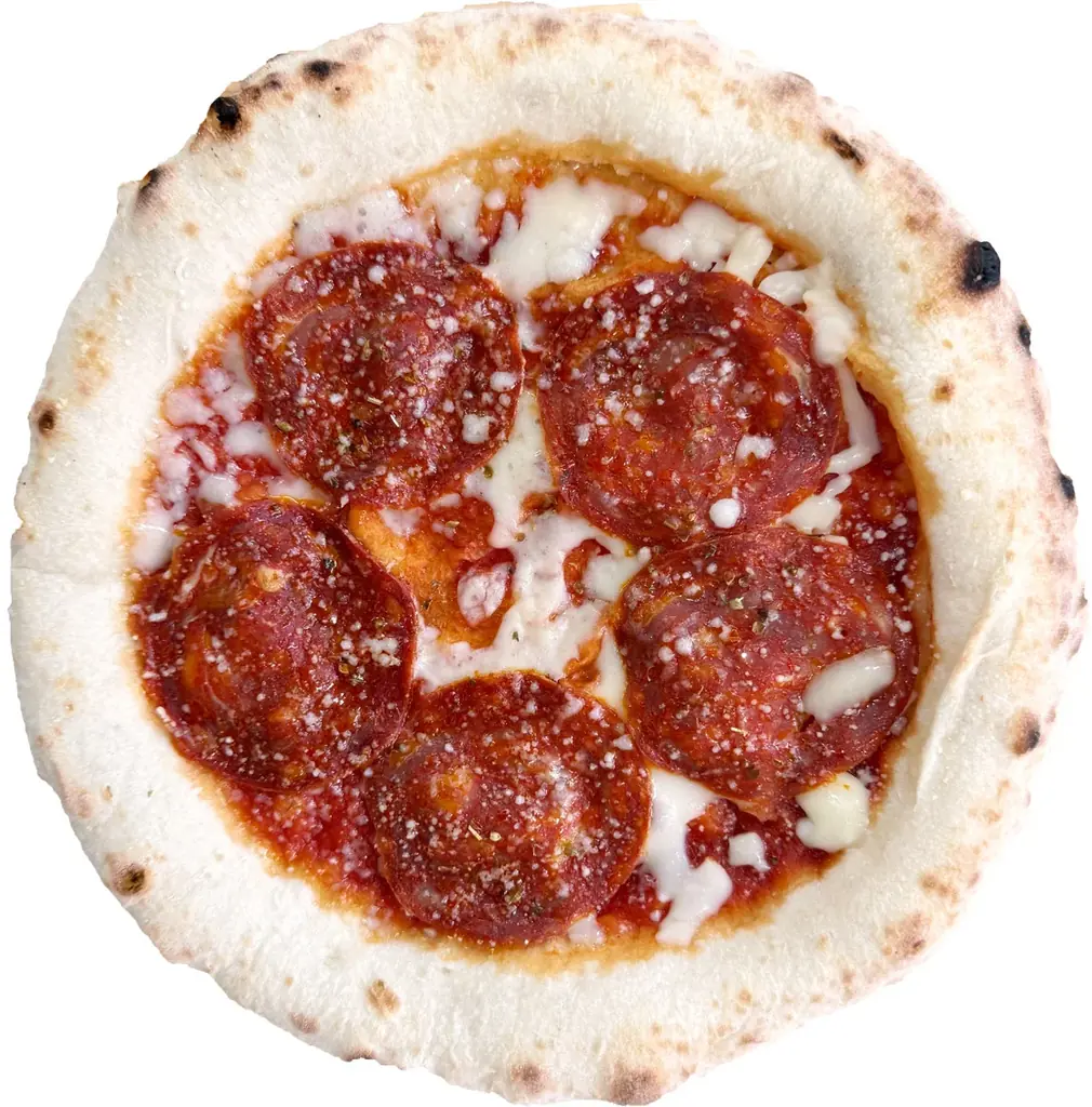 - サラミとオレガノ:スペイン産のチョリソータイプのサラミを使用し、仕上げにオレガノを散らした一枚。ワインやビールと合わせやすい味わいになっています。