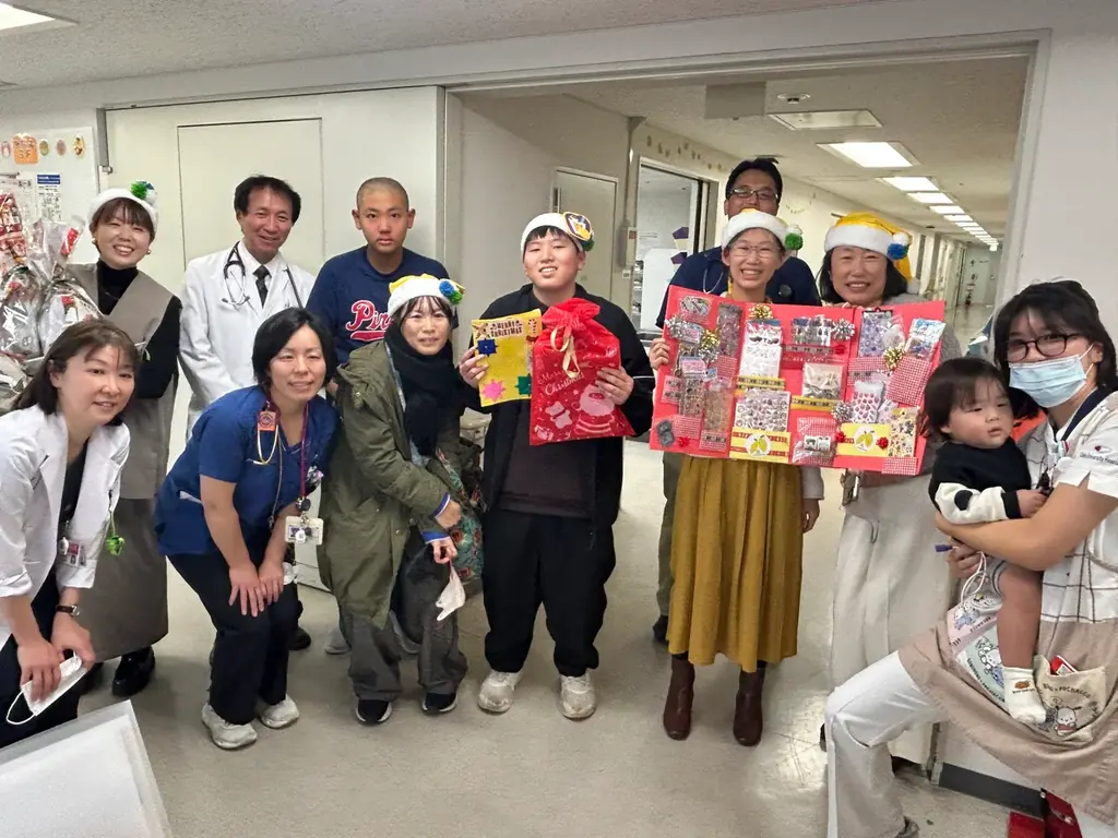 2025年12月16日(火)、ファミリーマートの社員とみんなのレモネードの会のこどもたちが千葉大学医学部附属病院(千葉県千葉市中央区亥鼻1-8-1)を訪問し、売上の一部を活用したクリスマスプレゼントを寄贈しました。訪問は16:30から17:00の間に実施されています。