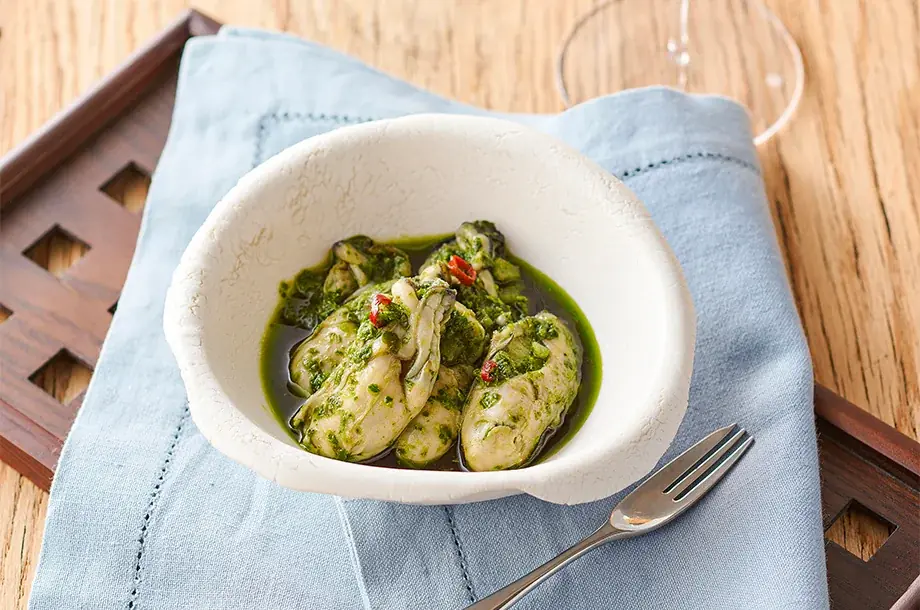 | 味の匠(函館市) | 牡蠣のバジル&ガーリック | PART1・PART2 | 1,890円(100gあたり) | プリプリの牡蠣にガーリックの効いた特製バジルソース |