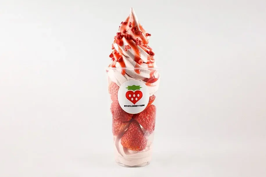 | きよたベリーファーム(札幌市) | 生いちごパフェ | PART1(イートイン) | 1,210円(1個) | 自家製ソフトクリーム(豊富牛乳使用)にたっぷりの生いちご |