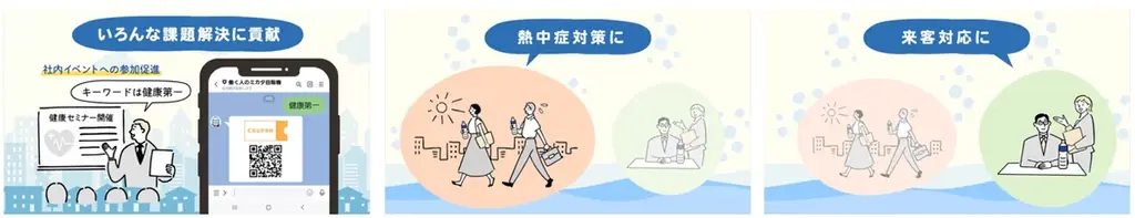 「働く人のミカタ自販機」は、導入企業がLINEを起点に社内コミュニケーションを活性化しつつ、飲料配布を福利厚生や施策の一環として運用できる仕組みである。導入に際しては、配布条件の設定や、紙媒体でのクーポン提供など、企業側の運用形態に応じた柔軟な対応が可能だ。
