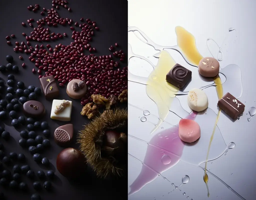 | 主な生産地/素材提供者 | 北海道(小豆/イマムラ 福寿こし餡)、長野(信州くるみ)、茨城(笠間の栗)、鹿児島 喜界島(白胡麻/鹿北製油)、兵庫 丹波(黒豆/小田垣商店) | 鹿児島(焼酎/本坊酒造 屋久島 大自然林)、山梨(ワイン/ドメーヌ ヒデ Hoshi Wine Appassimento)、北海道(ウイスキー/厚岸蒸溜所 小暑)、山口(日本酒・梅酒/獺祭) |