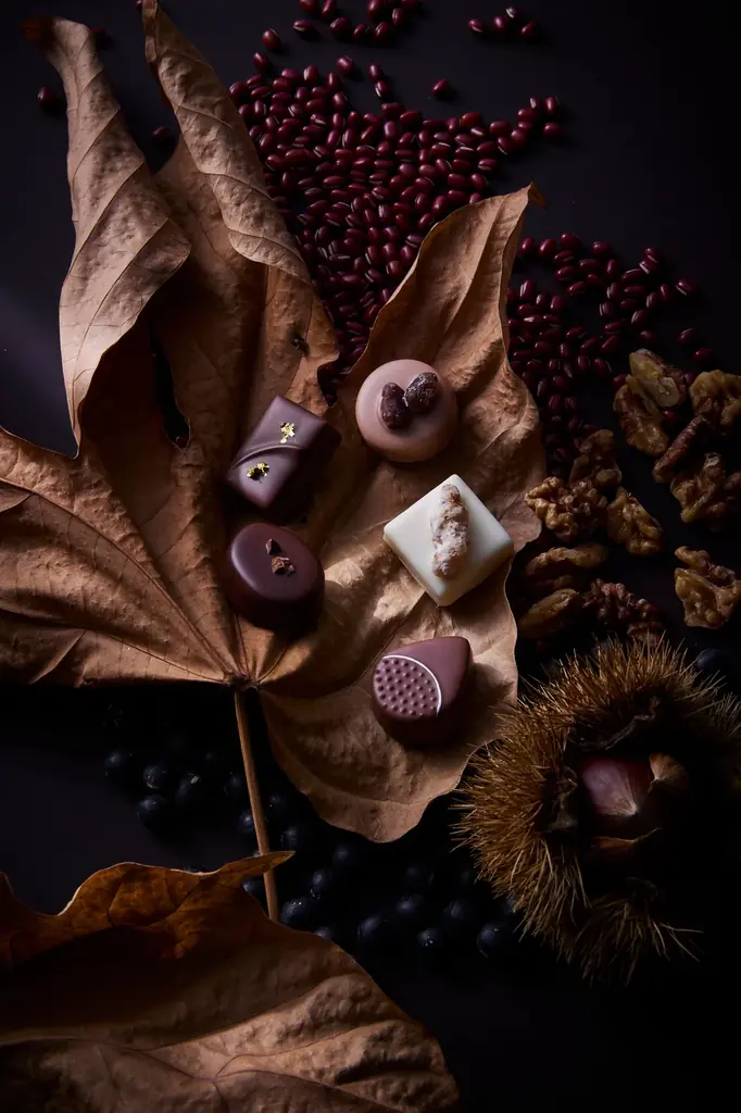 素材ごとに自家製チョコレートを調整し、食感や香りの差異を活かす工夫が施されている。例えば国産の胡麻は釜煎りの香ばしさを活かし、笠間の栗はペーストと甘露煮で栗の風味を閉じ込めるなど、各素材の特徴を尊重した仕立てだ。