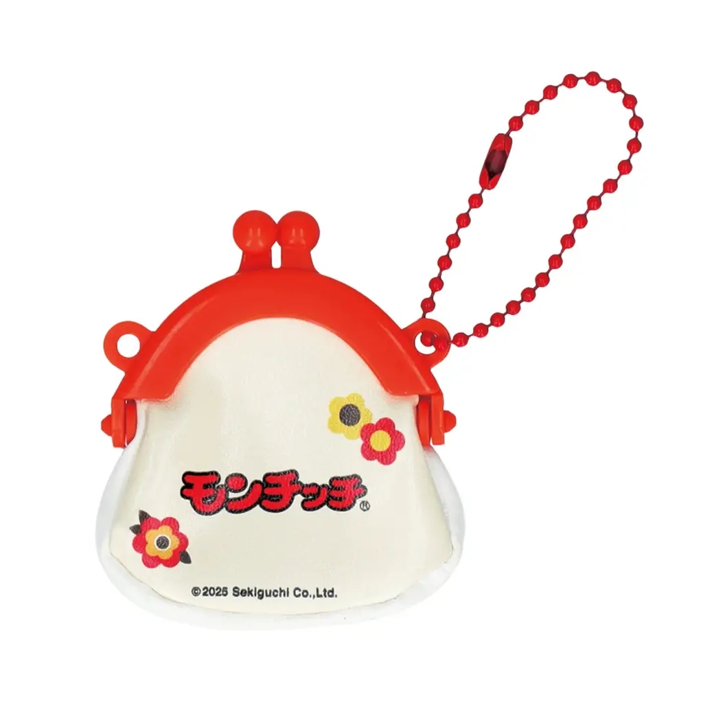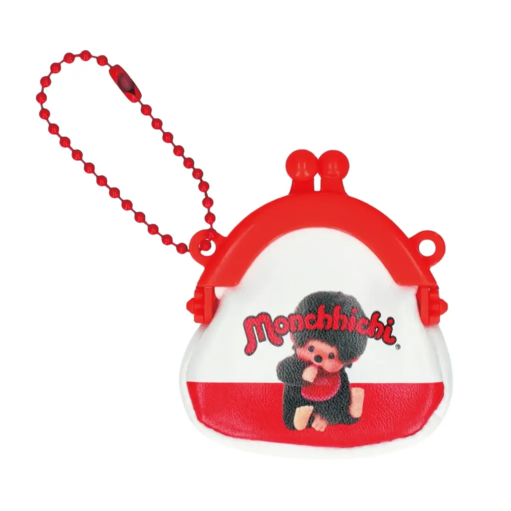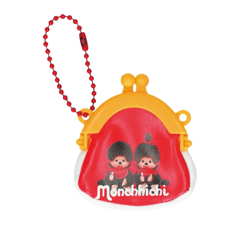 ボールチェーン付きのミニがまぐちタイプのキーホルダーです。定番のおしゃぶりポーズの「モンチッチくん」の実写やイラスト、双子のベビー「ベビチッチ」などをデザインした全5種が用意されています。