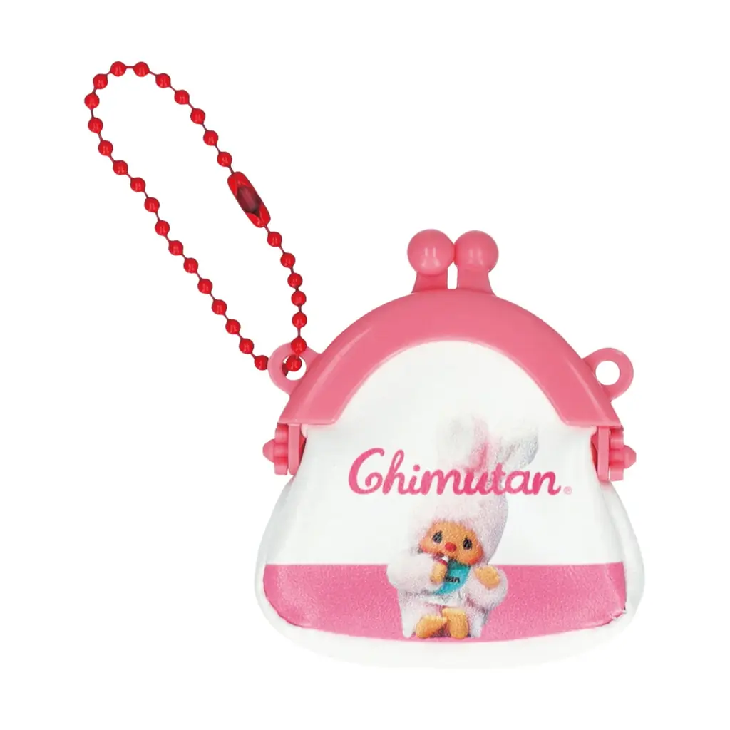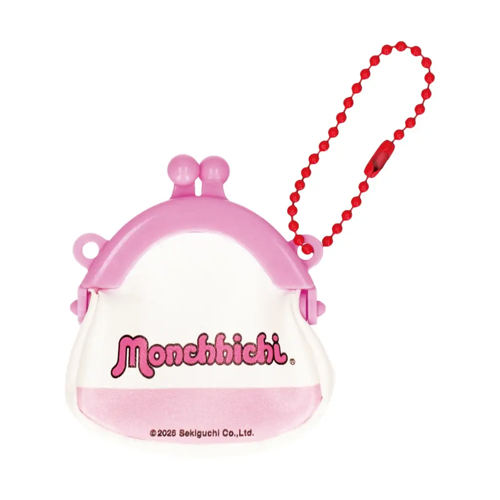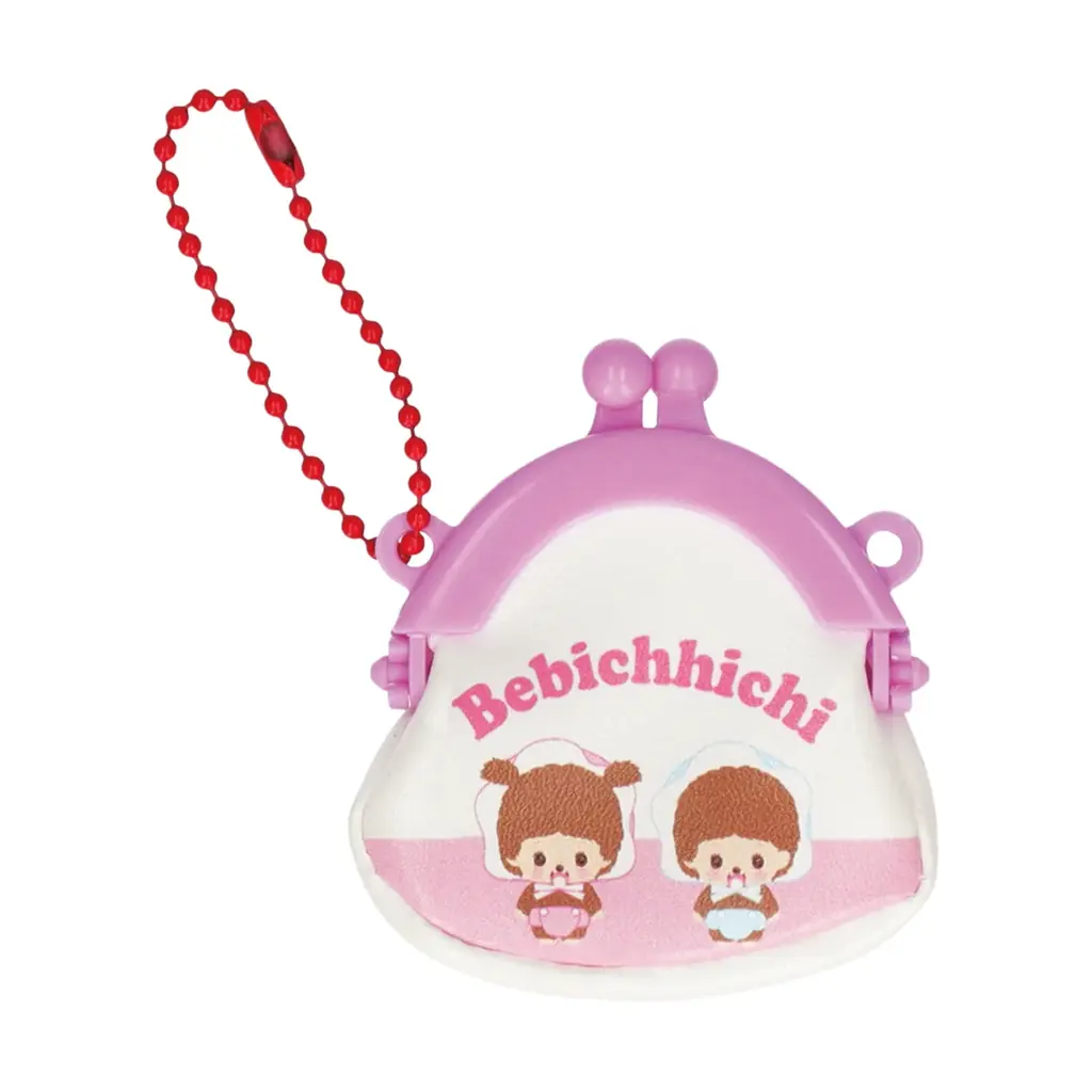 ボールチェーン付きのミニがまぐちタイプのキーホルダーです。定番のおしゃぶりポーズの「モンチッチくん」の実写やイラスト、双子のベビー「ベビチッチ」などをデザインした全5種が用意されています。