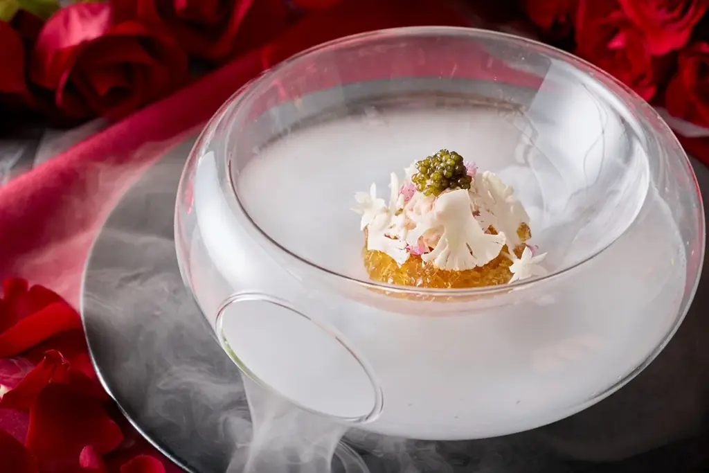 - ディナーコース「琥珀」例:17,600円~(消費税込・サービス料15%別)