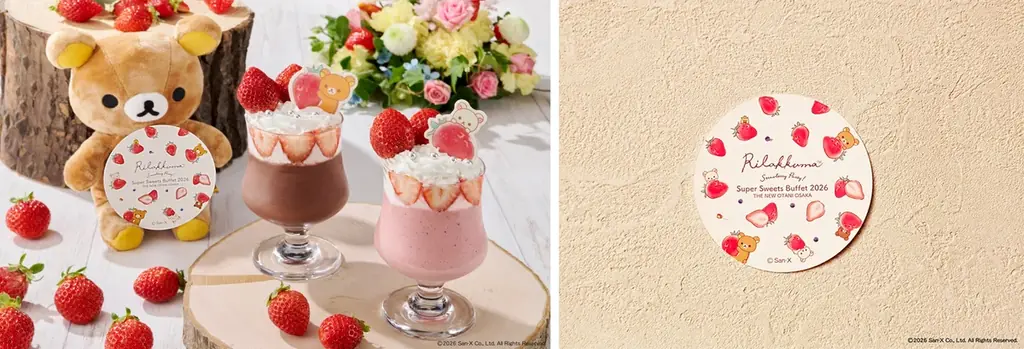 本企画では、期間限定のオプションとしてサンエックスの人気キャラクター・リラックマとのコラボレーションが実施されます。会場はホテルニューオータニ大阪のティー&カクテル「SATSUKI LOUNGE」(ロビィ階)で、いちごスイーツと合わせて楽しめるコラボドリンクが用意されます。