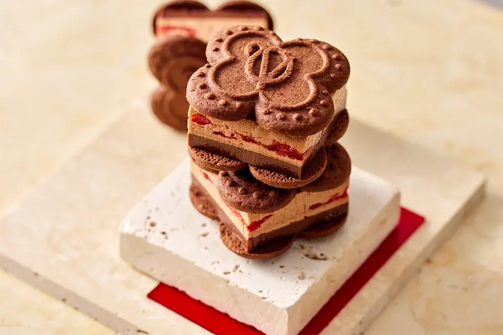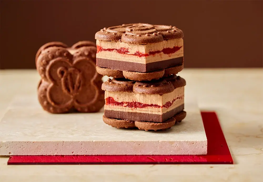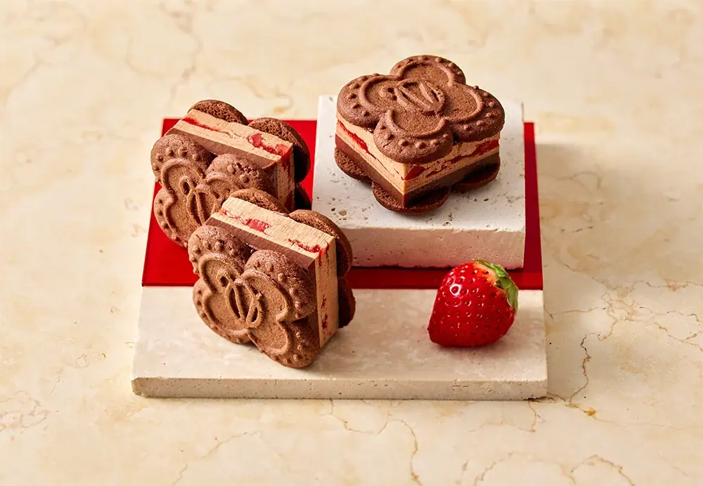いちごスイーツ専門店「VERY RUBY CUT(ベリールビーカット)」が、冬季限定商品として『ショコラTHEいちごバターサンド』を発売します。商品は苺の果肉を使ったコンフィチュールジュレに、自家製のショコラホイップバタークリーム、ショコラガナッシュを重ね、ココア香るクッキーで挟んだ構成です。