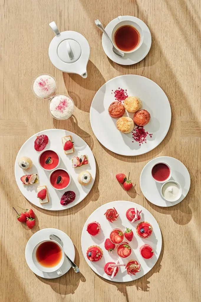 | 主なセイボリー | フォアグラのフラン(苺ピューレ・キャラメリゼ)、サーモンと苺のタルタル、オマール海老と根セロリのキッシュ、青森県産鴨胸肉と苺のサラダ | フォアグラのテリーヌ(苺・キャビア添え)、ロブスターと苺のブリオッシュ、苺とブラータのオープンサンド、パニプリ(苺とカニ) |