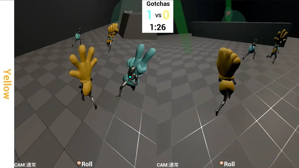 本作は、じゃんけんの手によって鬼ごっこの勝敗が決まるシンプルなルールの2対2対戦ゲームです。ルールをプログラミングなしに変更できる点が特徴で、万人が参加・観戦できる設計になっています。直感的な操作性とルールの柔軟性により、幅広いプレイヤー層に訴求することを目指しています。