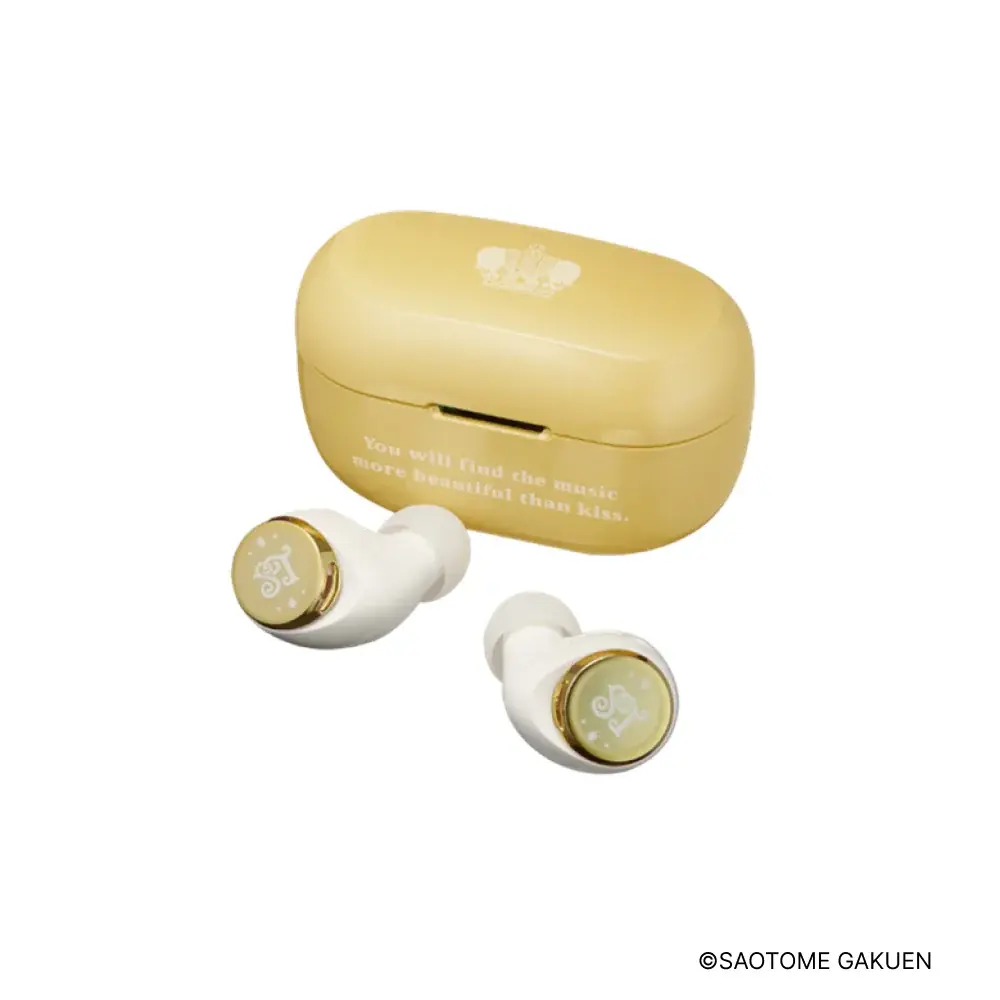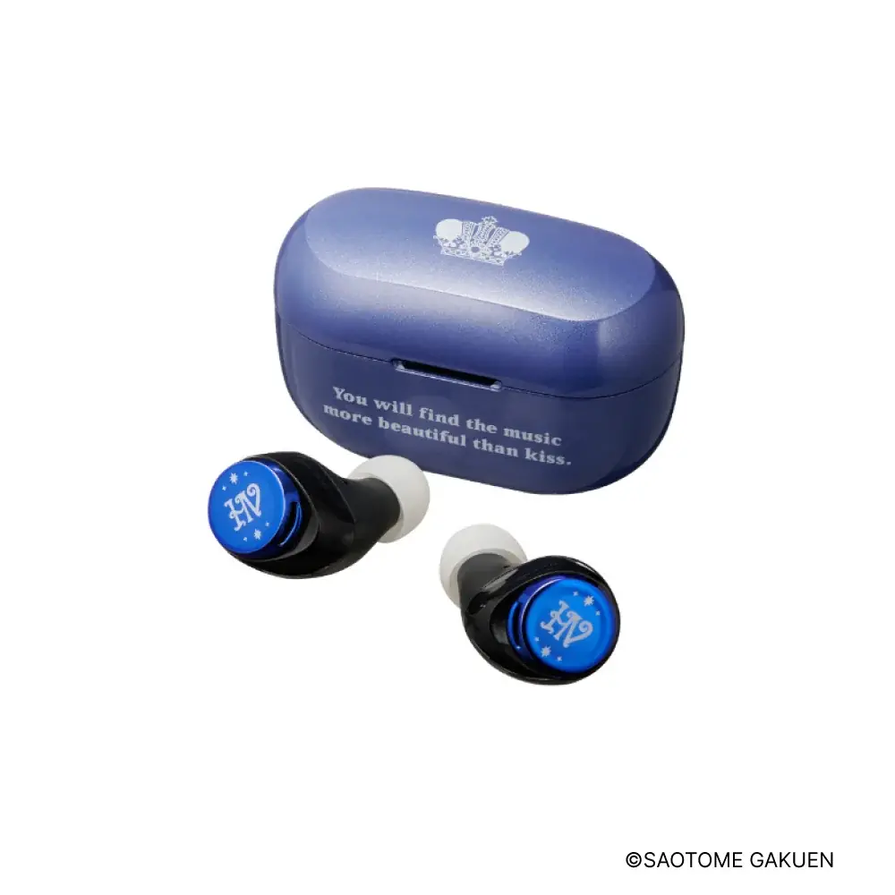 チャージングケースには王冠モチーフがあしらわれ、イヤホン本体のメタルボタンには各グループを象徴するアイコンが配置されます。各モデルはそれぞれグループの象徴カラーで仕上げられており、視覚的にも作品性を打ち出しています。
