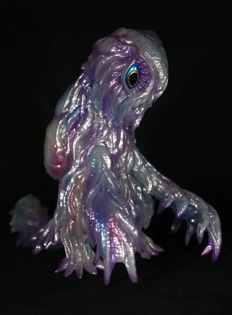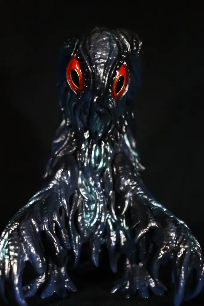 - 斜め・横から見た際の額の張り出し、藻やヘドロを想起させる体表質感、ヘドラの特徴的な目の表現。