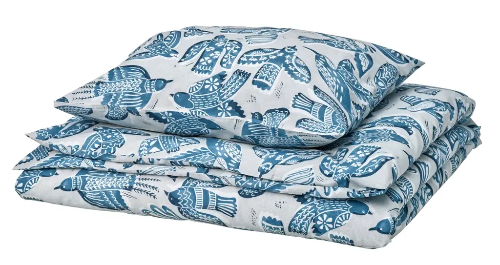 | BITTERSÖTA/ビッテルソータ 掛け布団カバー&枕カバー | ¥2,499 | 鳥模様、ポリエステル/レーヨン混紡、使用ポリエステルは100%リサイクル素材 |