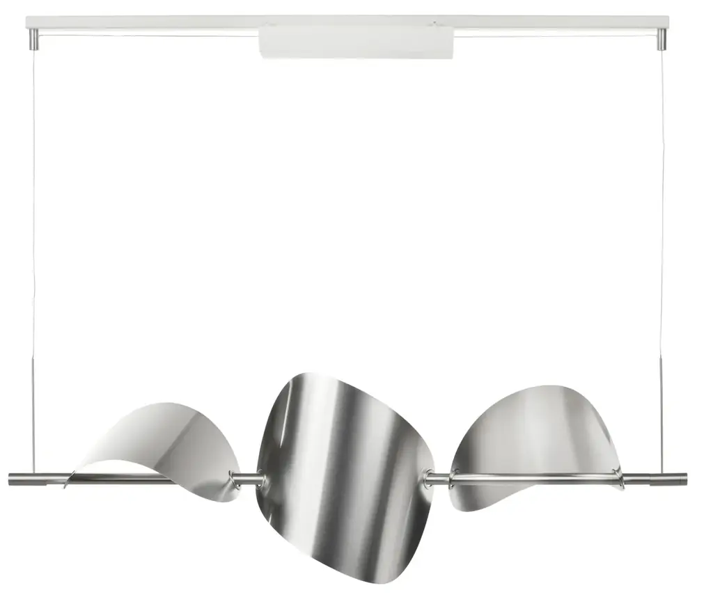 - 葉に似たパーツがロッドの上で浮かぶようなデザインで、動きを感じさせるペンダントランプ。3枚の回転可能なシェードにより光の向きを変えられ、ムードのある照明や部分照明をつくることができます。