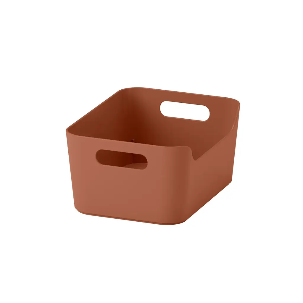 - 新色として落ち着いたグレーブルーとレッドブラウンが追加。マットな表面の多目的ボックスで、小物の収納や整理に便利。持ち運びしやすくキャビネット内やワークトップ上での隠す収納・見せる収納の両方に活用できます。