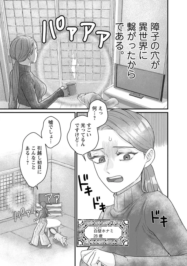 物語はアラサーの無職・白壁ホナミが主人公です。貯金をあてにゆるく暮らしていたところ、猫が開けた障子の穴から光が差し、祈りの声が聞こえてきます。スマホで解決方法を検索して読み上げたことから、感謝されて奉られ“異世界の神様”扱いとなるという設定です。
