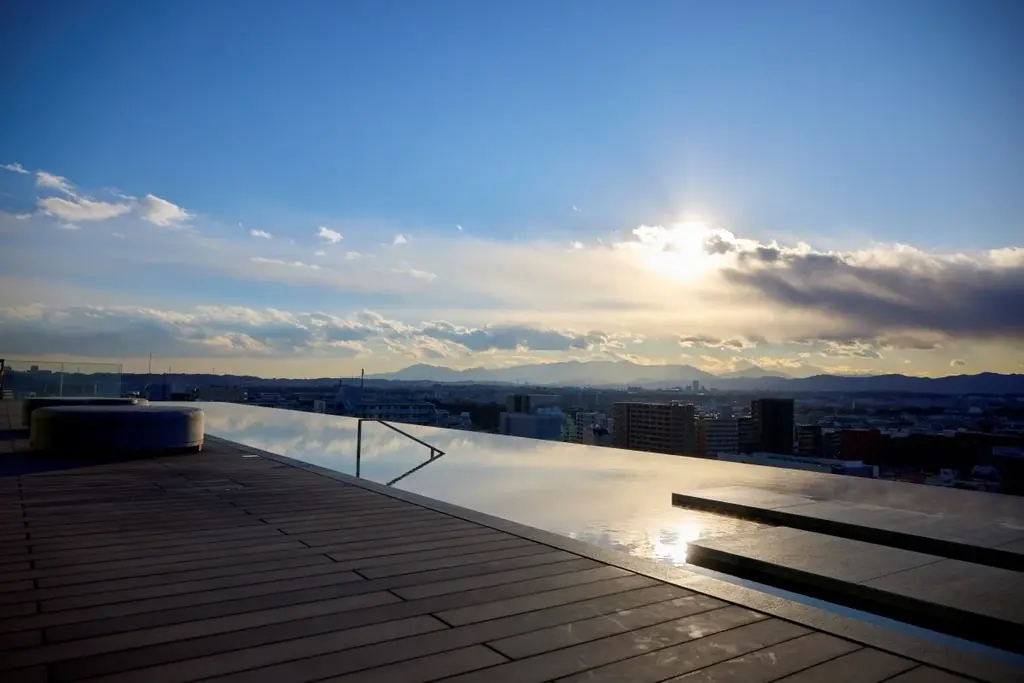 ダイチノレストランはテラス席を備え、緑に囲まれた落ち着いた雰囲気の中でアフタヌーンティーを提供します。一方、ソラノルーフトップバーは最上階に位置し、インフィニティプールの水面に映る空模様や昭和記念公園の景色を楽しめる設計です。