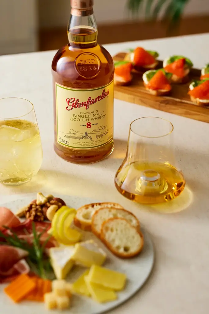 新定番となる「グレンファークラス8年」は、ブランドの個性である直火焚き蒸留とシェリー樽熟成の特性を保ちつつ、より親しみやすい味わいにチューニングされています。デリケートなシェリーの甘さとほのかな柑橘のフレーヴァーが調和した、エントリーモデルとして設計された1本です。