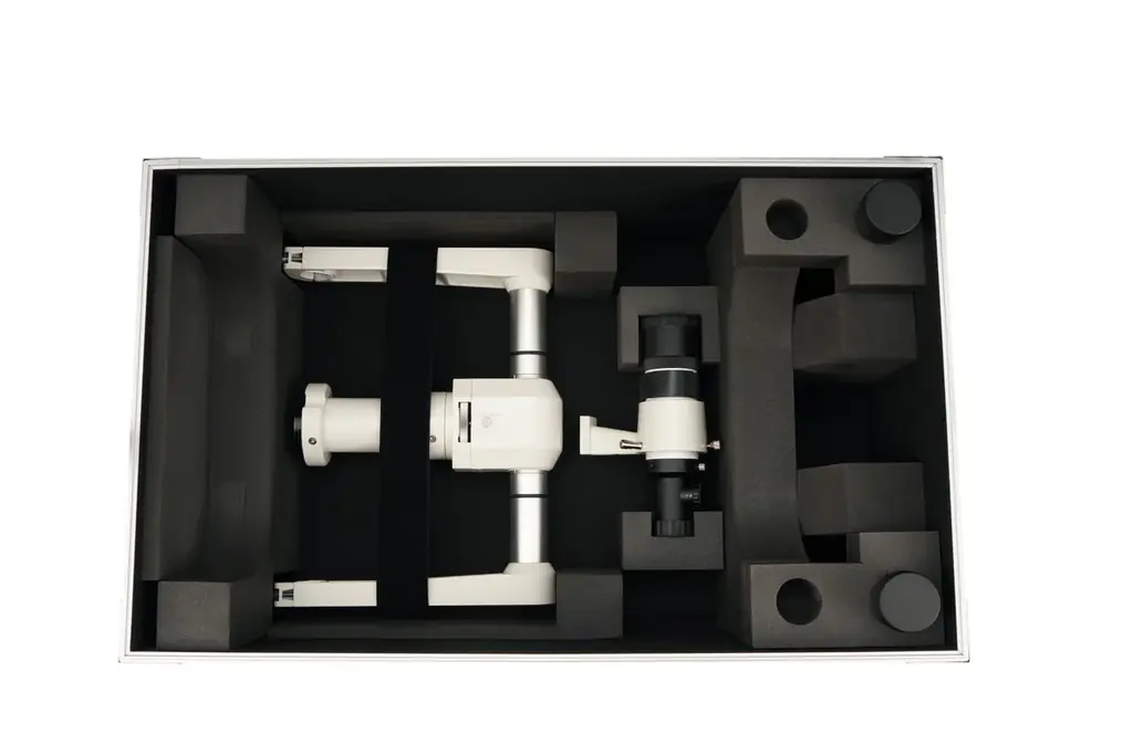 本製品は双眼鏡本体のみならず、経緯台やファインダー、接眼レンズまでをまとめて収納可能にすることを主眼に置いた携行用ケースです。持ち運びの利便性と機材保護を両立させる構造と素材の採用により、従来品と比較して軽量化と収納力の両立を実現しています。