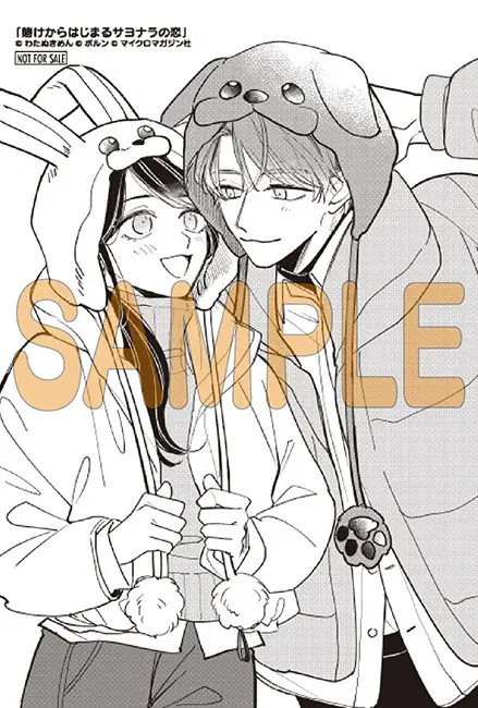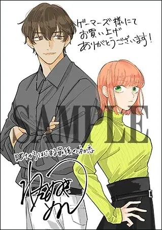 配布される特典は描き下ろしイラストカード(非売品・1種、両面印刷)です。カードには前作『サヨナラの恋』の二人と、新作『最後の初恋』の主人公となる二人が描き下ろされており、両作品のキャラクター同士の対比ややり取りの違いが楽しめる仕様になっています。