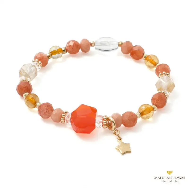 - スターカットブレス BE HAPPY 2026 – 2026年のラッキーカラーであるオレンジを配し、中心に大きなカーネリアンを据えた総合運アップのブレスレット。リンク:https://malulani.info/?pid=187971437