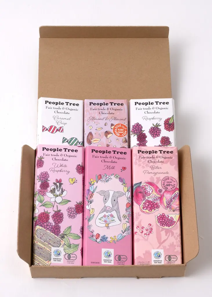 ピープルツリーのチョコレートはすべての原材料をオーガニックで揃え、フェアトレードの仕組みを通じてつくり手の労働条件や生活の安定を支援することを目的としています。生産段階から環境と人に配慮した選択がなされている点が商品の大きな特徴です。