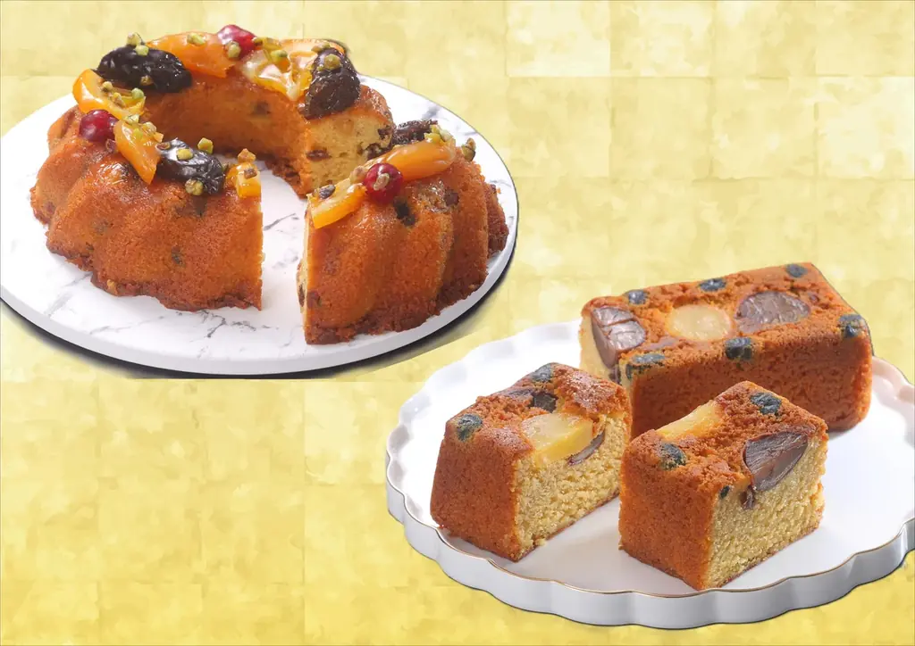 左:フルーツケーキ 4号(約12cm) 価格 1,780円(税込 1,922円) 販売期間:2025年12月26日(金)から。