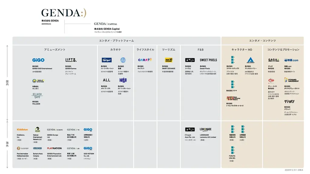 GENDAの事業領域とグループ規模──国内外で多角展開
