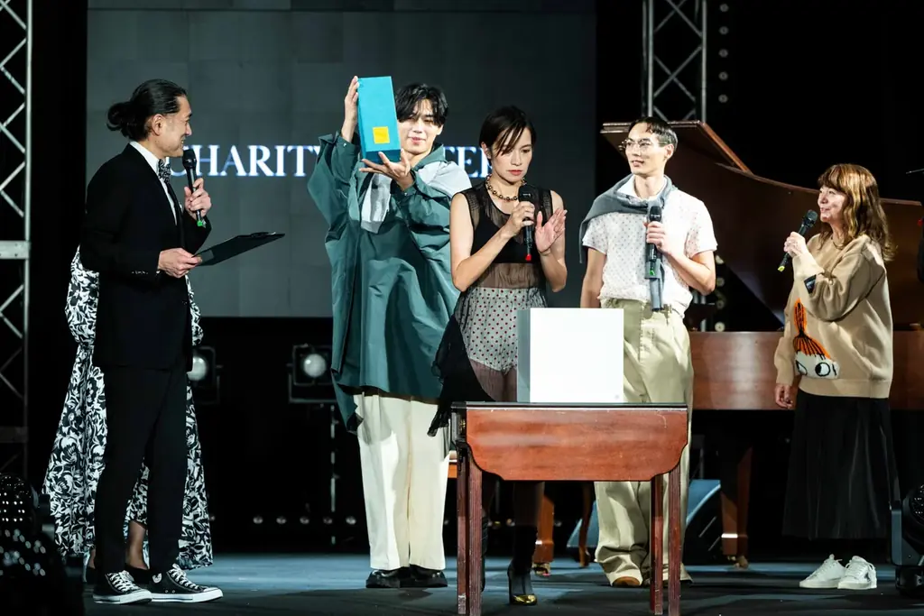 恒例のチャリティ抽選会はシャーリー富岡とマイケル富岡がプレゼンターを務め、ブランド提供の豪華賞品(ヴァレンティノ、Chloé 等)が並びました。本イベントで集まった寄付金はイベント史上最高額となる合計334万2000円でした。
