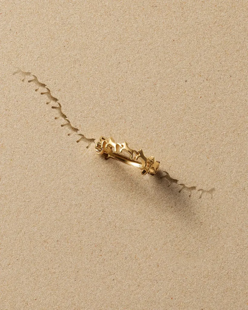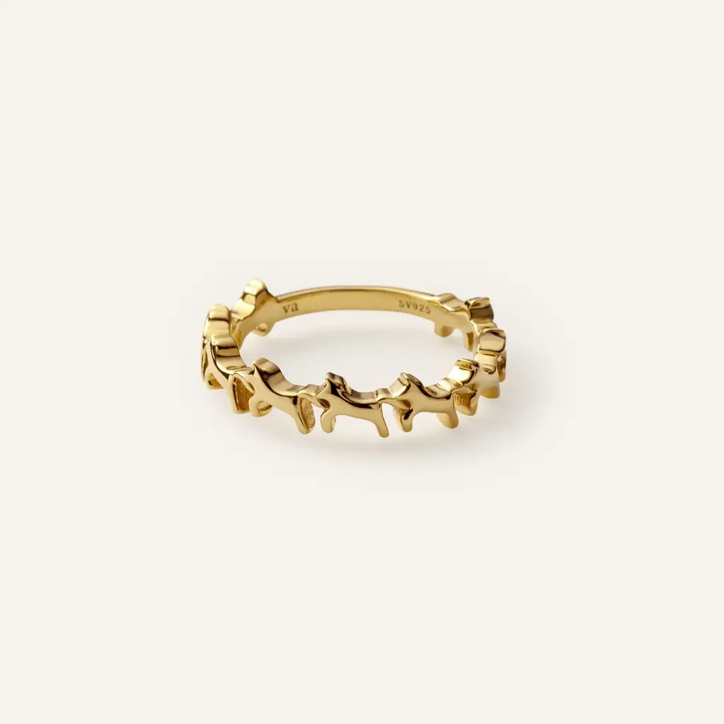 左向きの配列は視覚的にも流れを生み、指の上で連続する馬の動きを想起させることで、着用時の表情が豊かになるよう計算されています。