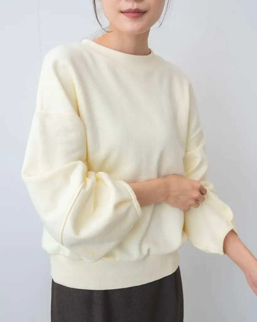 製品は国内での生産を基本としており、素材や工程の透明性を重視しています。みかんスウェットについても、生地の染色工程から縫製まで日本国内で管理されています。