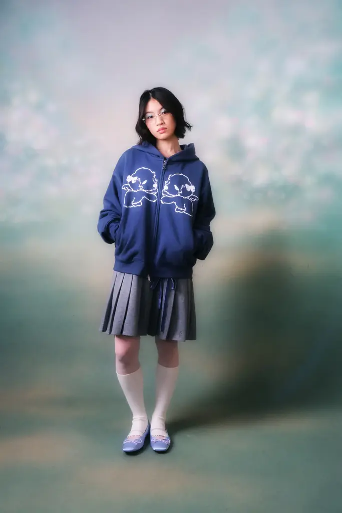 ローンチ第一弾は合計で16型が販売されます。ラインナップにはジャケットとスカートのセットアップ、ジップフーディー、バッグ、アクセサリー、スケートボードデッキなどが含まれます。アイテムはおそろいで楽しめる提案を中心に、素材や色味で個性を出せる設計になっています。