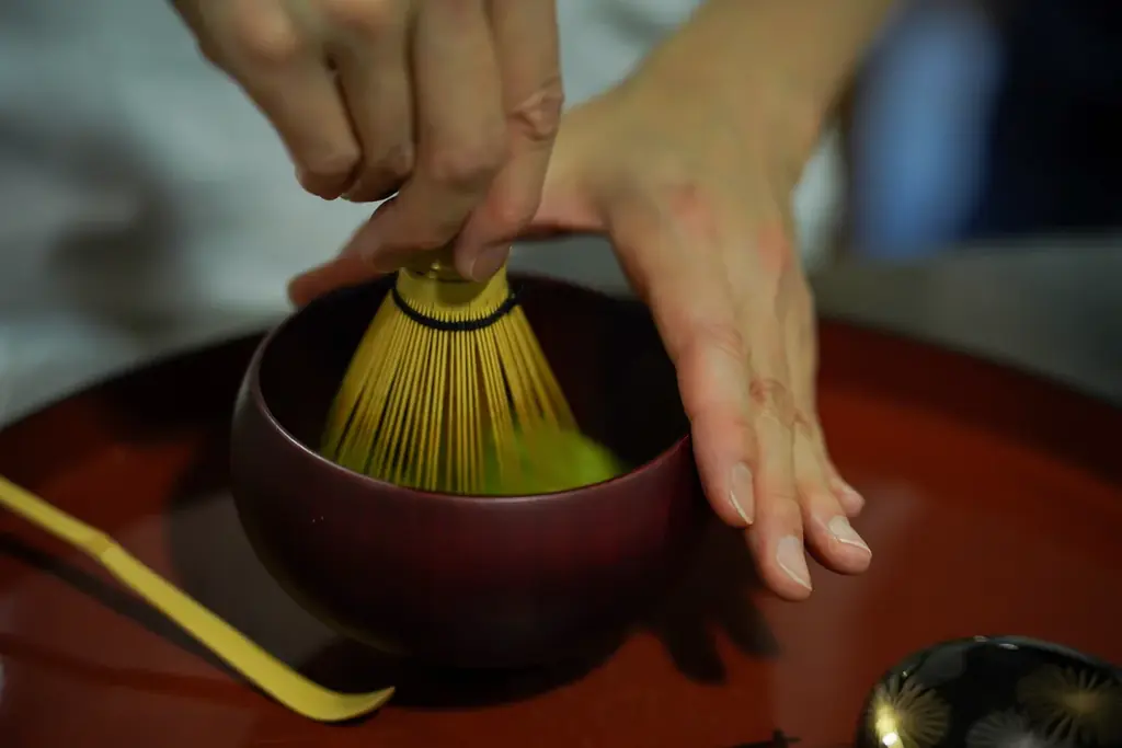 和抹茶セットプランは老舗茶屋「放香堂」の抹茶と、京都の料亭「杦 -SEN-」杉澤料理長監修の和菓子がセットになった内容です。和菓子は栗きんとんまたは葛餅のどちらかが提供されます。写真はイメージです。