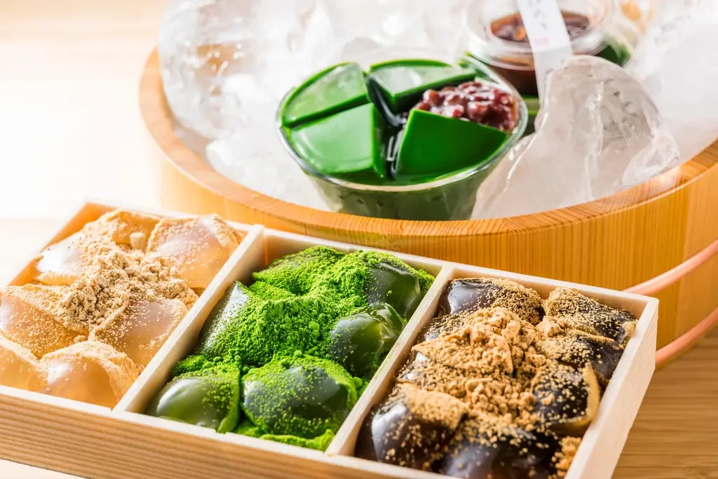 - 茶の露ほろり(1個)401円。わらび餅3色詰合せ(1折)1,301円。