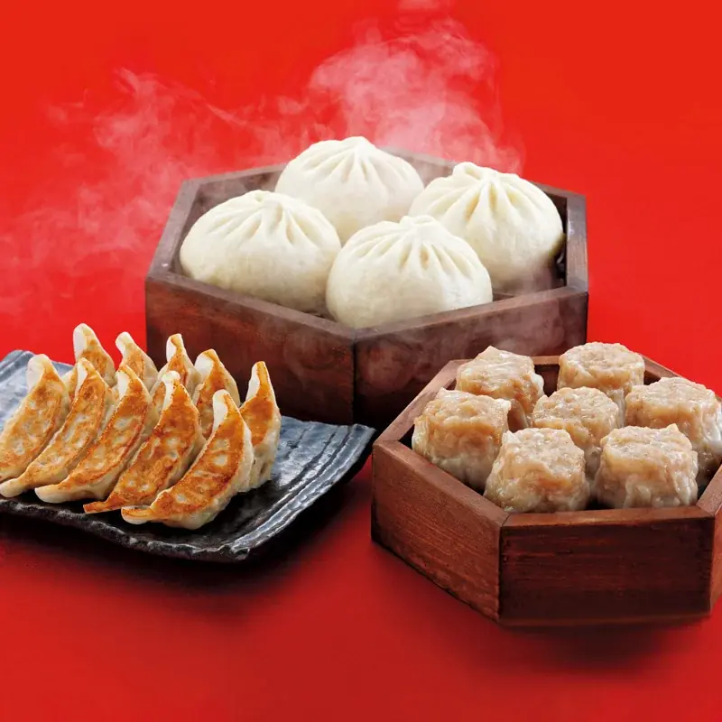 - おすすめBセット(豚まん6個・焼売10個・焼餃子15個)2,830円。551HORAIは整理券を配布