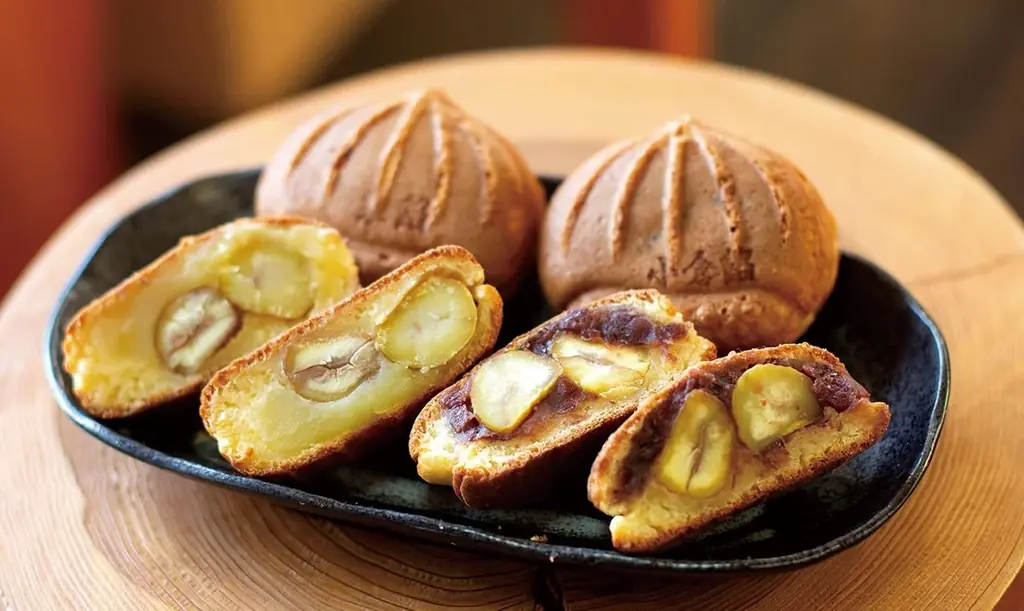 - 栗餡団(栗あん、小倉あんほか)各1個281円。