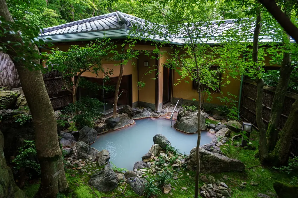 客室は用途や好みに合わせて複数のタイプが用意されている。いずれも静寂な滞在と庭園の景観を重視した造りで、特別室には露天風呂とサウナが備わるなど、プライベート性が高い。