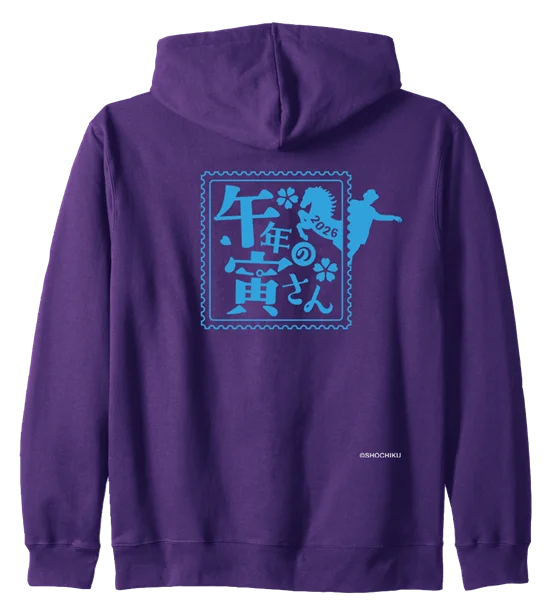 - ジップパーカー:ブラック、ネイビー、杢グレー、パープル(©松竹株式会社/「午年の寅さん」ロゴ)